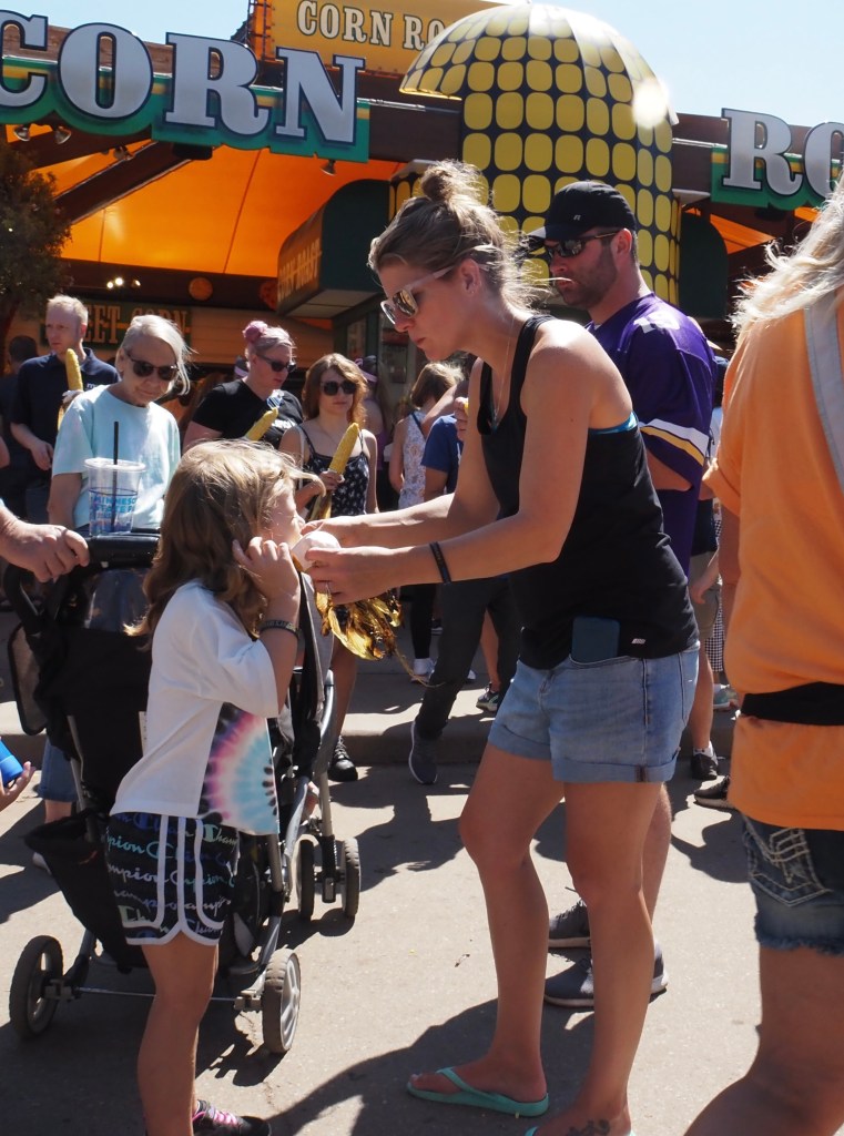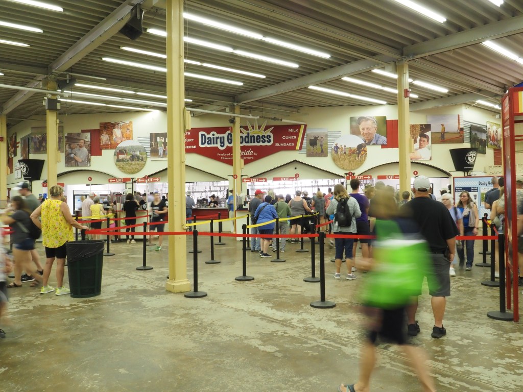 The Great Minnesota Get-Together – The Minnesota State Fair is an example of customer service in a 322-acre site. As an attendee (one of more than 100,000 daily attendees of the 12-day extravaganza -adventure? – I can attest to the focus on making sure guests are as comfortable as they can be. The fairgrounds are relatively accessible (there could always be more curb ramps so one doesn’t have to find the end of the block) and the interior displays have plenty of room for wheelchair movement. The volunteers staffing the information booths are responsive and while I expect they get the same questions all day, every day, they make sure that you feel they actually care about your experience. Everyone who showed animals were open to visitors (families?) petting the cows, pigs and lambs and answering lots more questions.